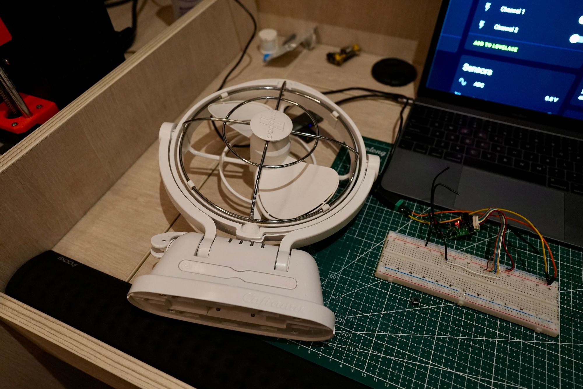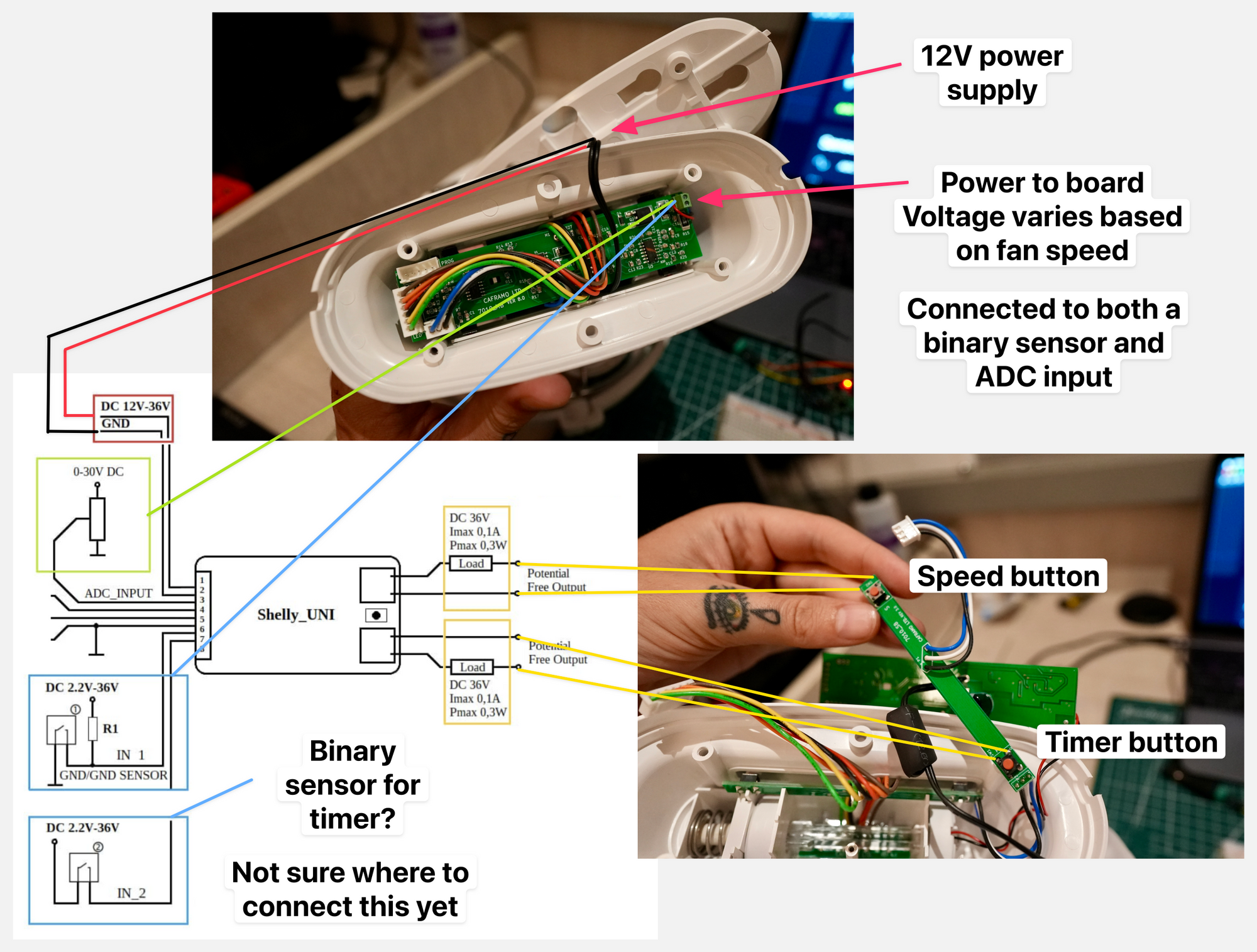 We have Sirocco II fans throughout the boat. They're great, but the only way to turn them on is to physically press buttons on the fan. My wife can't reach half the fans on the boat, and there's no other way to remotely automate them just by switching on/off the voltage. They are a "dumb device" and the Shelly UNI should be able to make them smart.