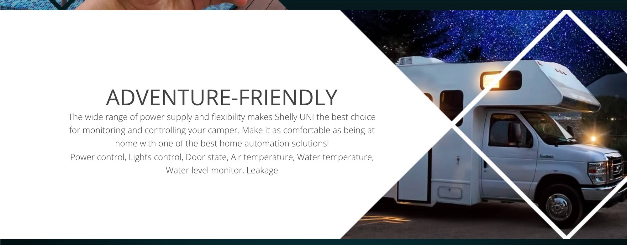 The UNI is in a small group of Shelly devices which support 12V systems, which was what got my interest in the first place. The marketing page for the device features a prominent photo of an RV and promises that it does useful things, including controlling power, lights, door state, water levels and temperature.