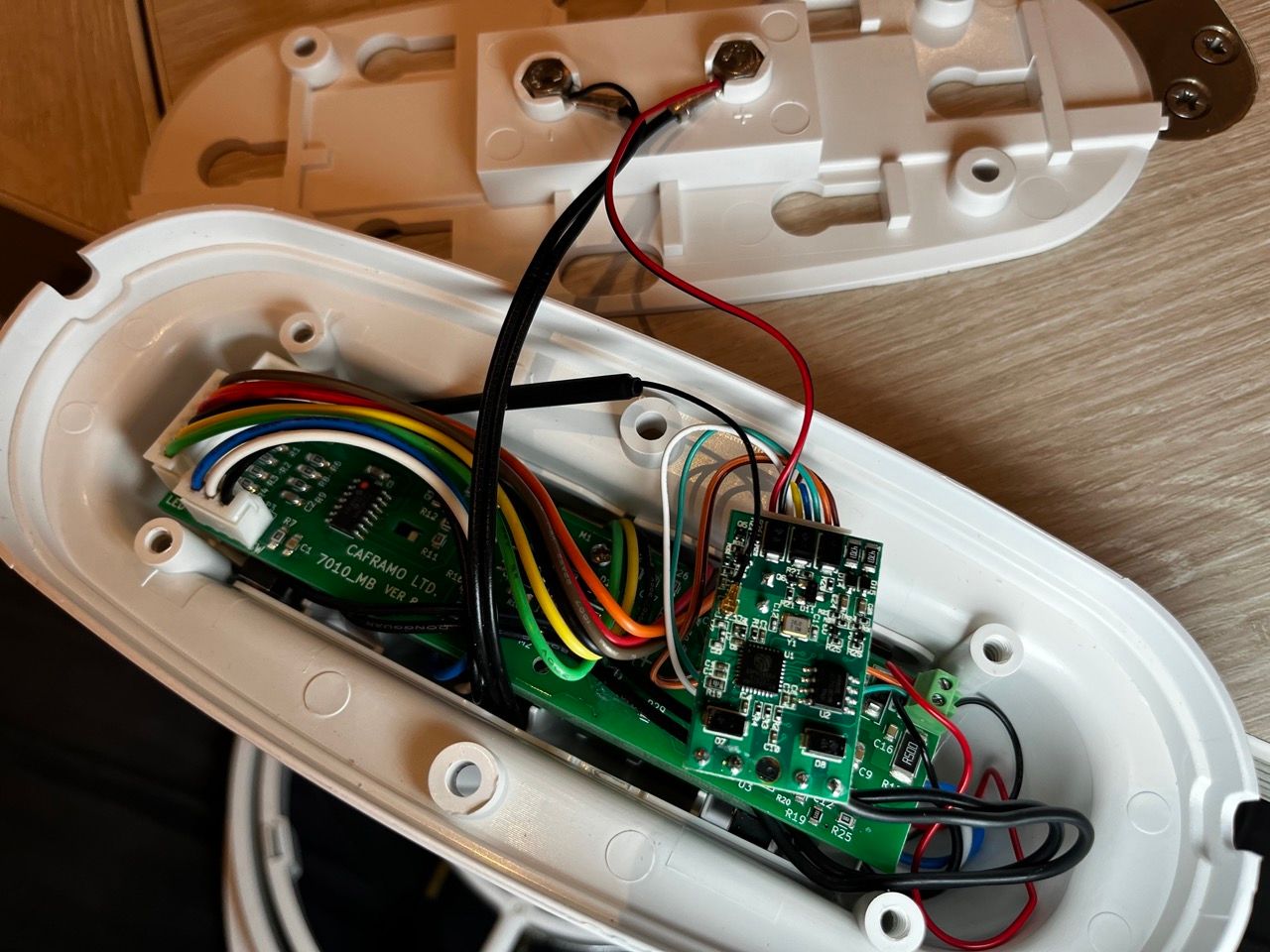 I twisted some wires to try and get them into a neat position so I could close up the case and put everything back together again. I forgot to disconnect power, and I dragged some of the exposed/unused Shelly wires across the fan board, right near the board power.