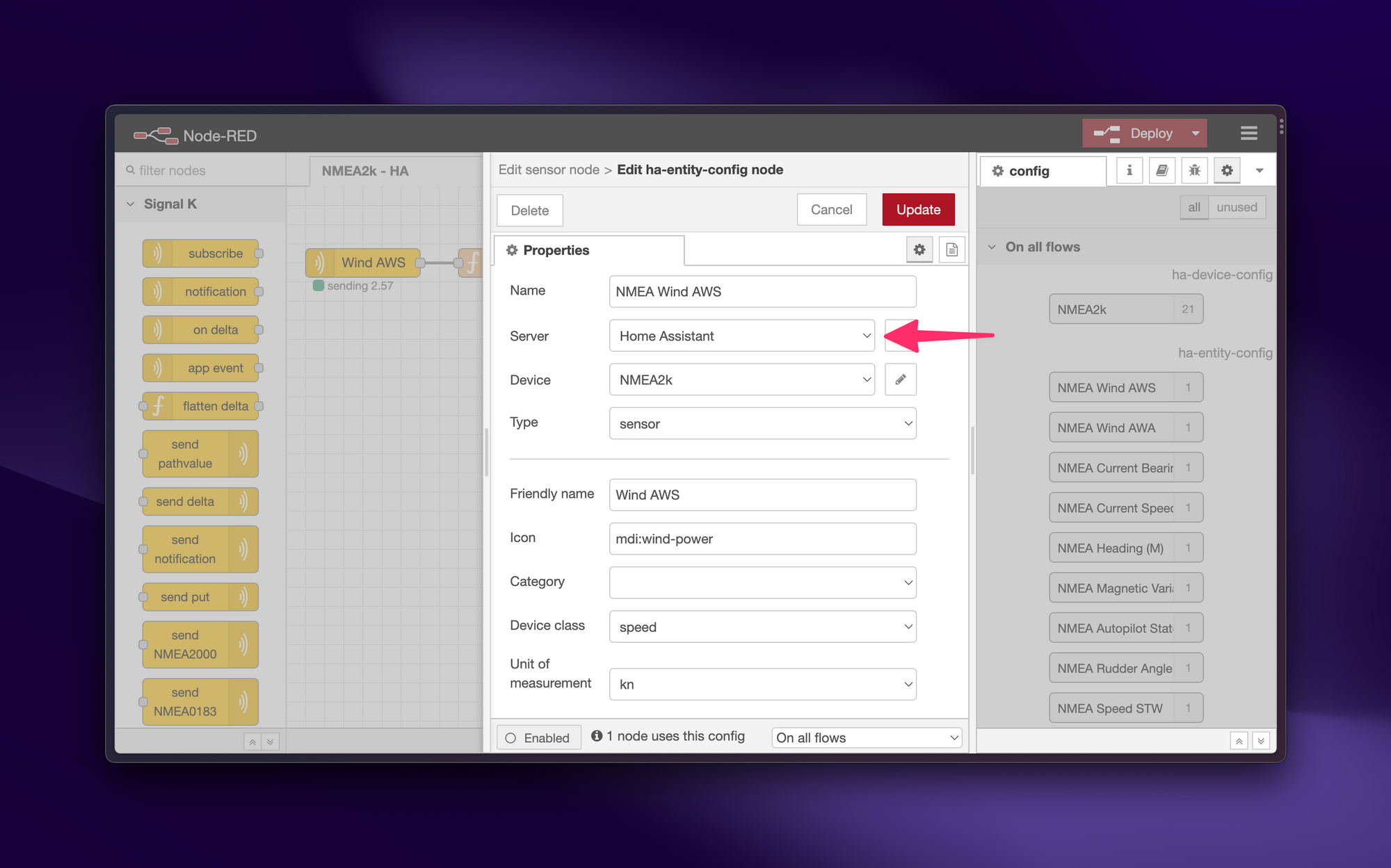 Double click into the Home Assistant Sensor node and hit the pencil icon beside "Entity Config".