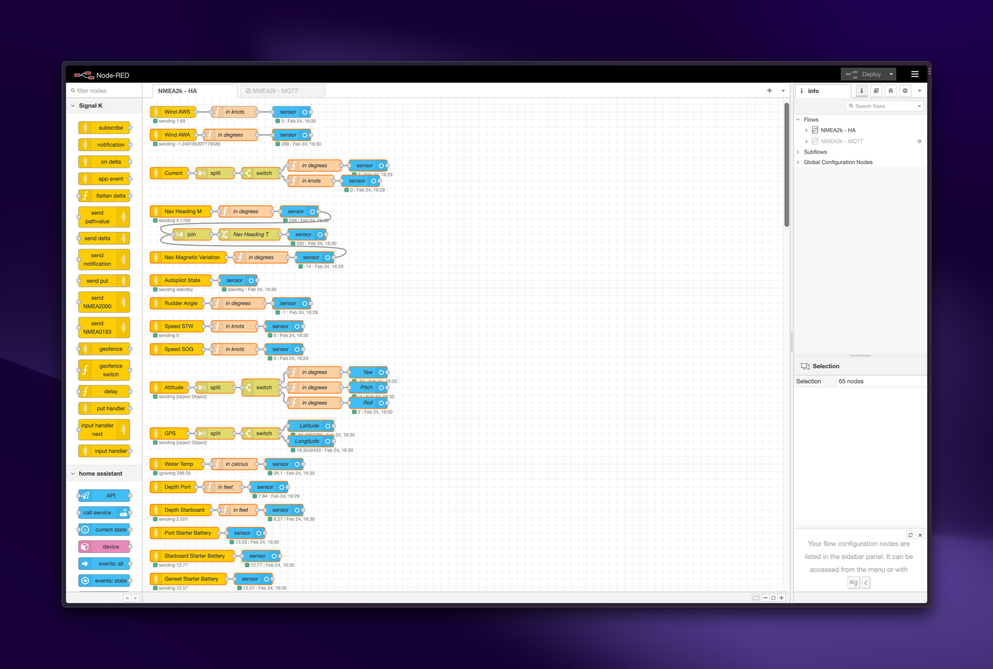 With everything set up, we can now pipe data all the way from the boat's instruments through to sensors in Home Assistant.