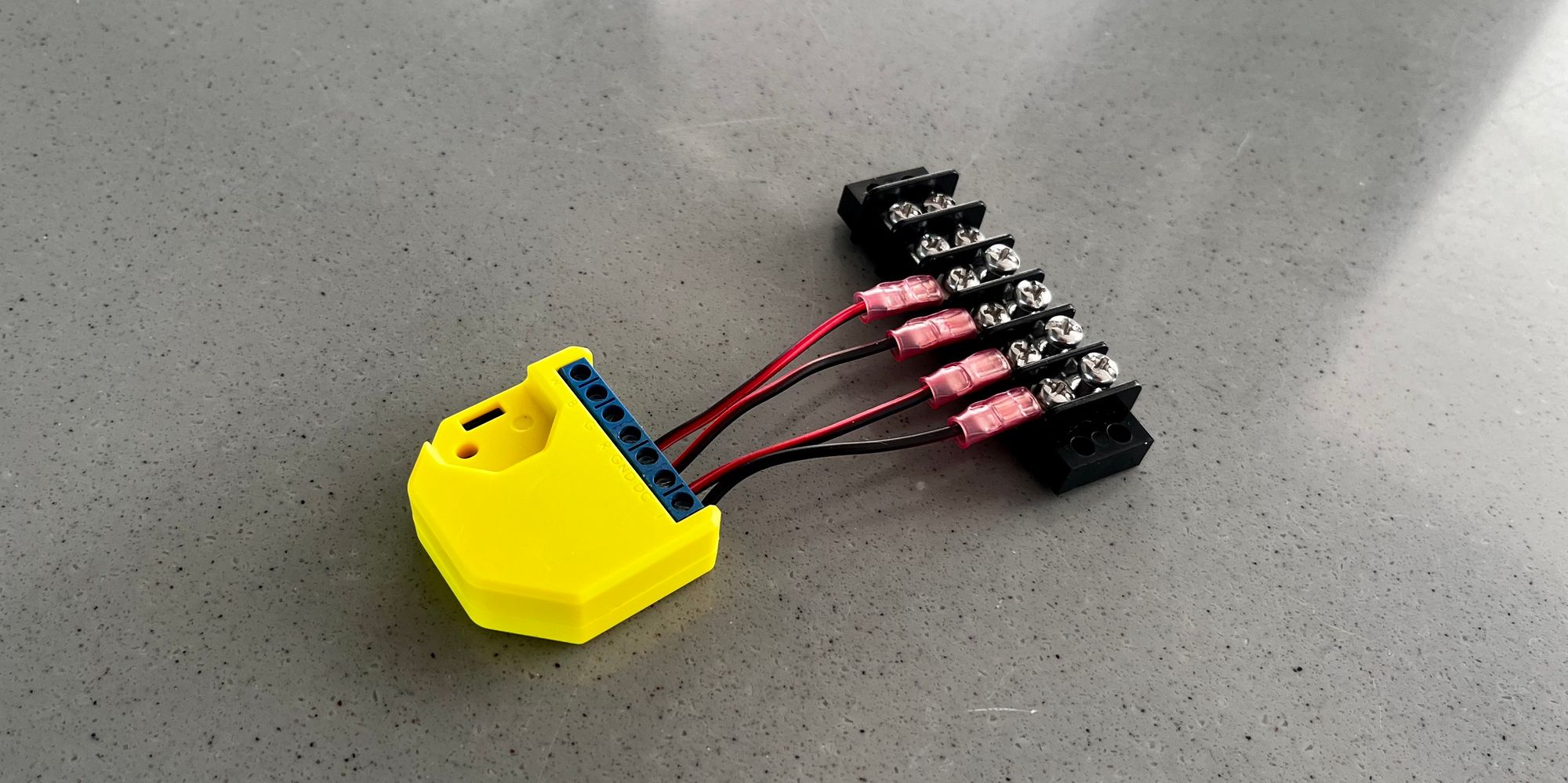 To make it easier to tie some of the wires together, I tied the Shelly to a terminal strip that would give me a little more room to work with.